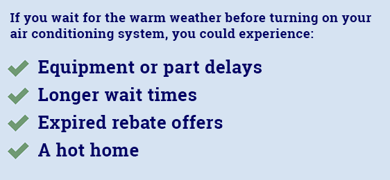 Testing your Air Conditioning system is quick, easy and will keep your family cool and comfortable when it matters.